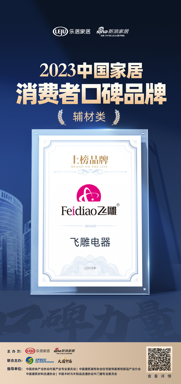 口碑传承 精湛工艺∣飞雕电器荣登“2023中国家居消费者口碑榜”!